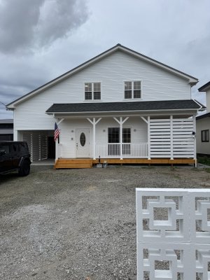 外観は五城目のサーファーズハウス以来のホワイトの樹脂サイディング!
