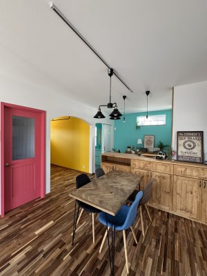 またなんと言ってもリビング周りのインテリアはカラフルでPOPな色使いで、住んでいて楽しいお家に仕上がりました。