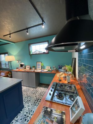 アイランドの天板はモールテックスを採用。見た目よし、質感良しな塗料です。
