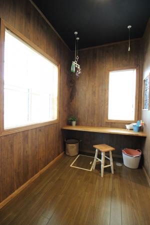 玄関前のウッドデッキ・カバードポーチはちょっと一休みしたり、BBQにも良さそうなスペース。