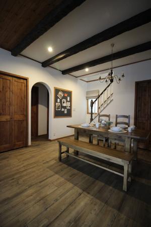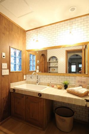 レンガタイルや輸入の照明器具、梁型、天井羽目板など、細部にもこだわり、ヴィンテージアメリカンスタイルを追求しました。