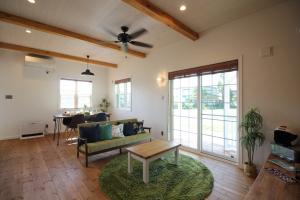 リビングもレッドシダーのヘリンボーンの羽目板、天井もパインの羽目板、床材はもちろん無垢パイン材!無垢ルーバーの折れ戸もカリフォルニアスタイルの雰囲気を醸し出します。
