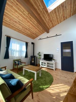 リビングは屋根勾配を活かした勾配天井で天井高が高く、とっても開放的!