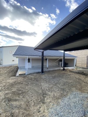 大屋根を下げてきてカースペースを確保、ガレージ内部は施主様の趣味であるスケボーを存分に楽しむBASEに。施主様がスケボーのランプもこれから自作されるそうで更に楽しい場所になりそうです。