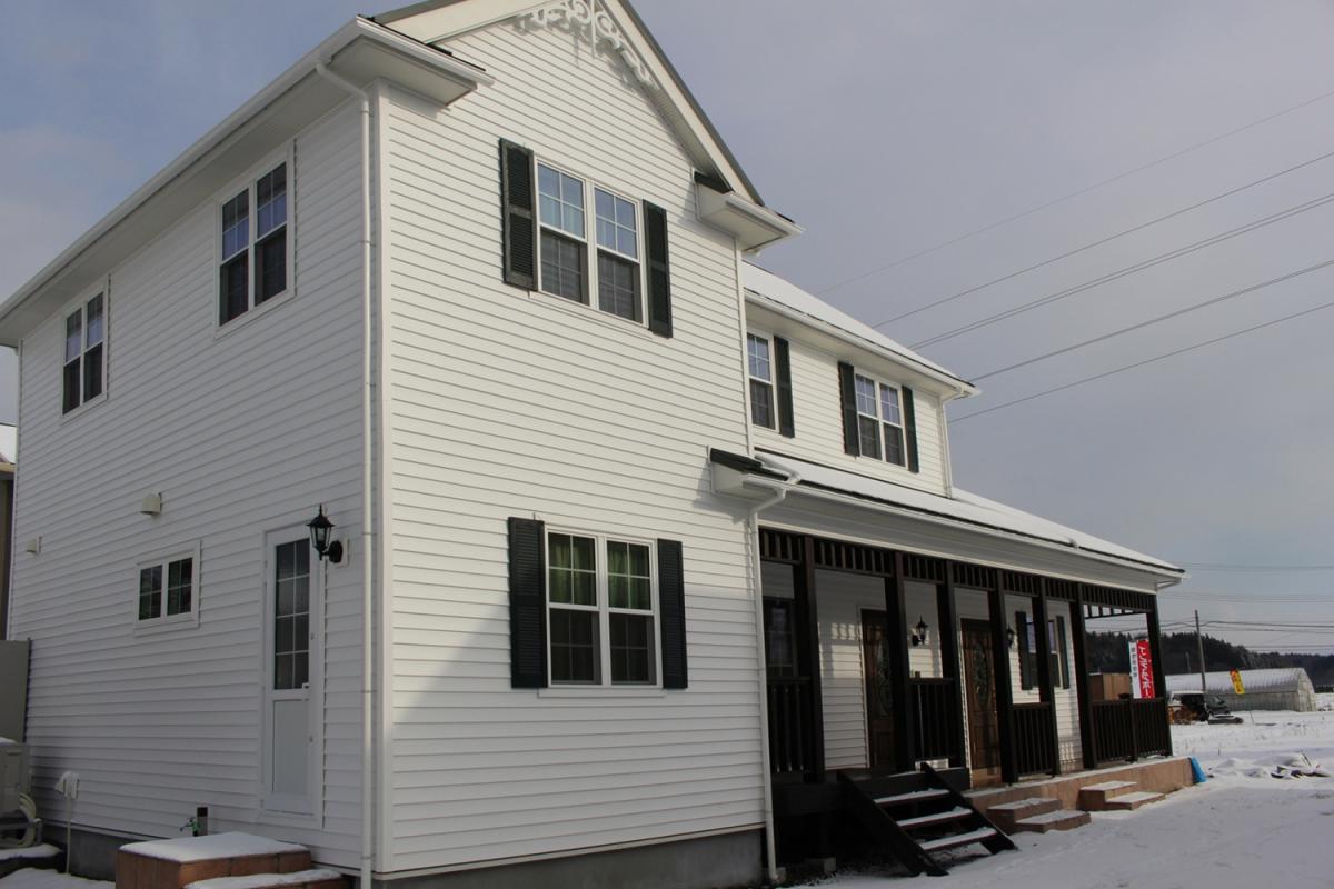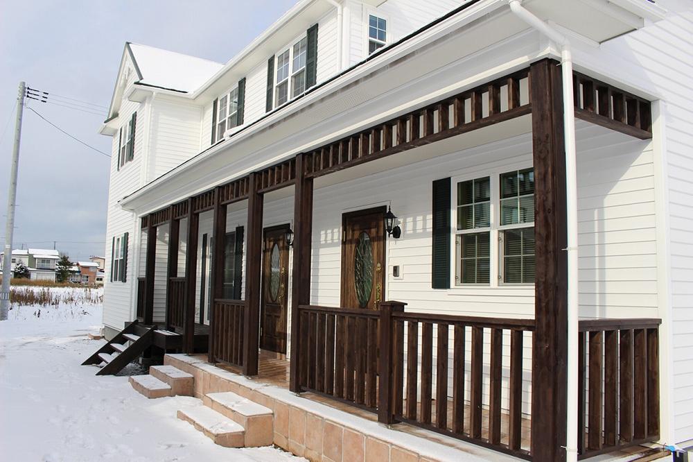 2017年最後のお引き渡しになるのが、白い外壁にグリーンの屋根と飾り雨戸がアクセントになったアメリカンスタイルS様邸。