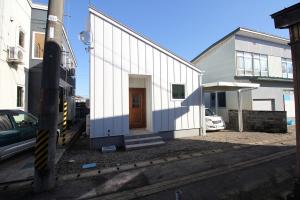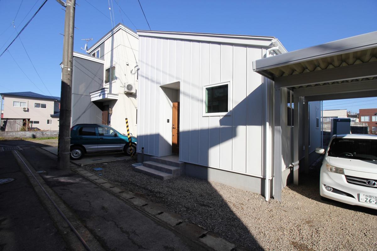 外観はシンプル且つすっきりとしたデザインに抑え、外壁・屋根は白のガルバリウムを採用。