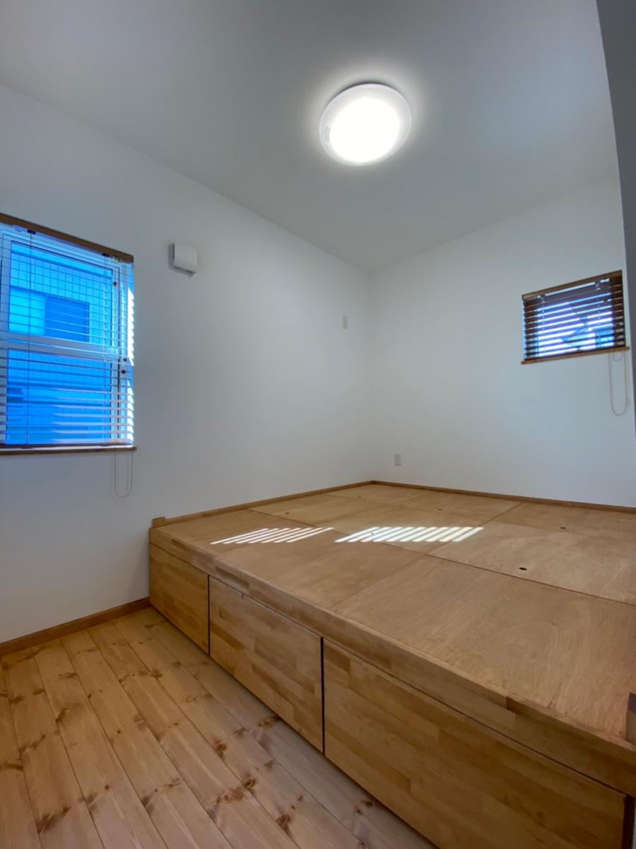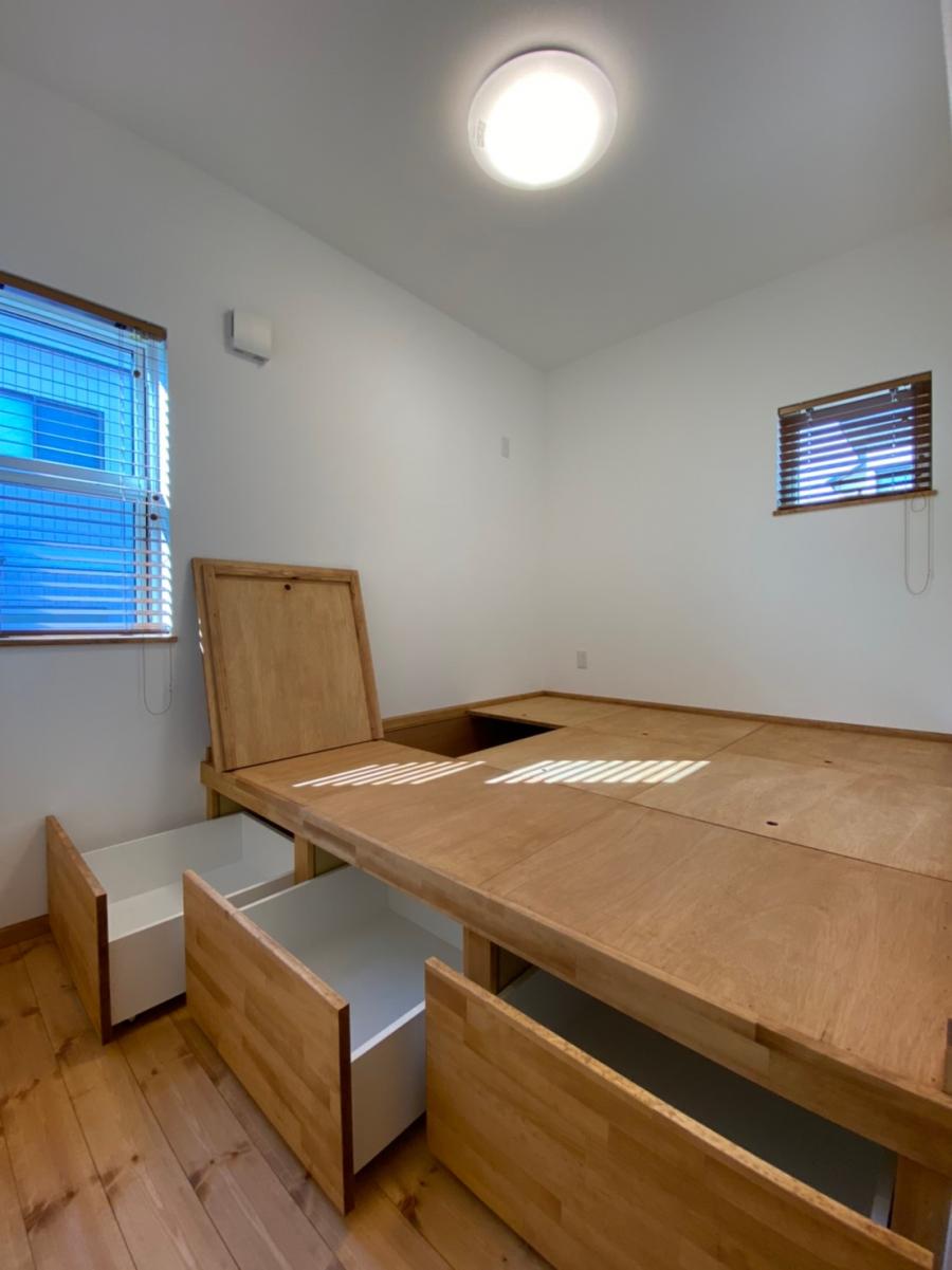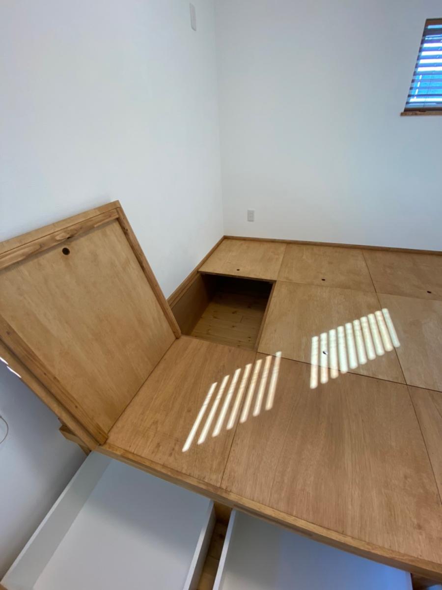 ベッドを置かずに布団で休まれるとのことで小上がりにしてその下は全て収納に。