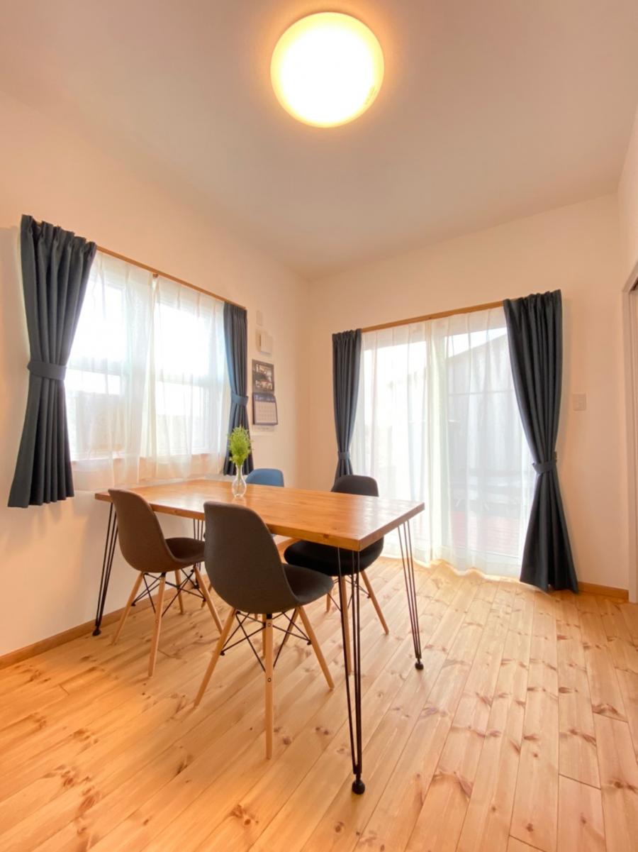 内部は無垢パイン材の床が見た目にも優しく、シンプルに抑えた内装に温かさをプラス。