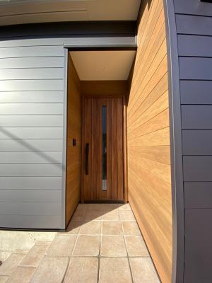 外観はガルバリウムとウッド調のサイディングを組み合わせ、スタイリッシュな中にも木の柔らかさが良い感じです(^^)