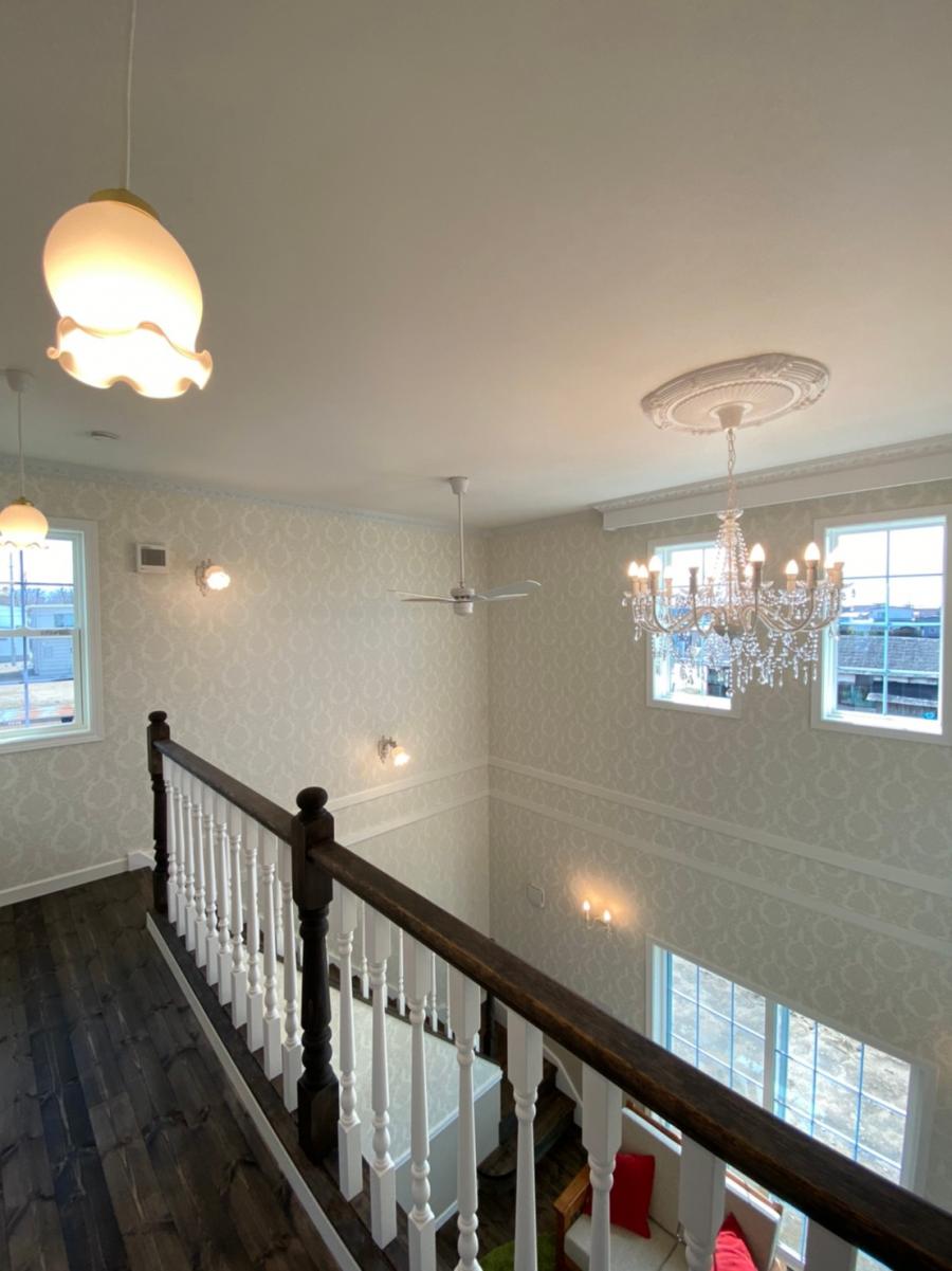 モールディングや回り縁もデザイン性にこだわり、A様がこだわり抜いたクロスと相まってまるで結婚式場のような西洋の雰囲気に♪