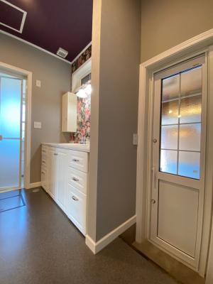広い洗面所はガレージと直結。洗面所に隣接したストレージスペースも使い勝手抜群です。