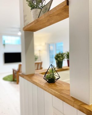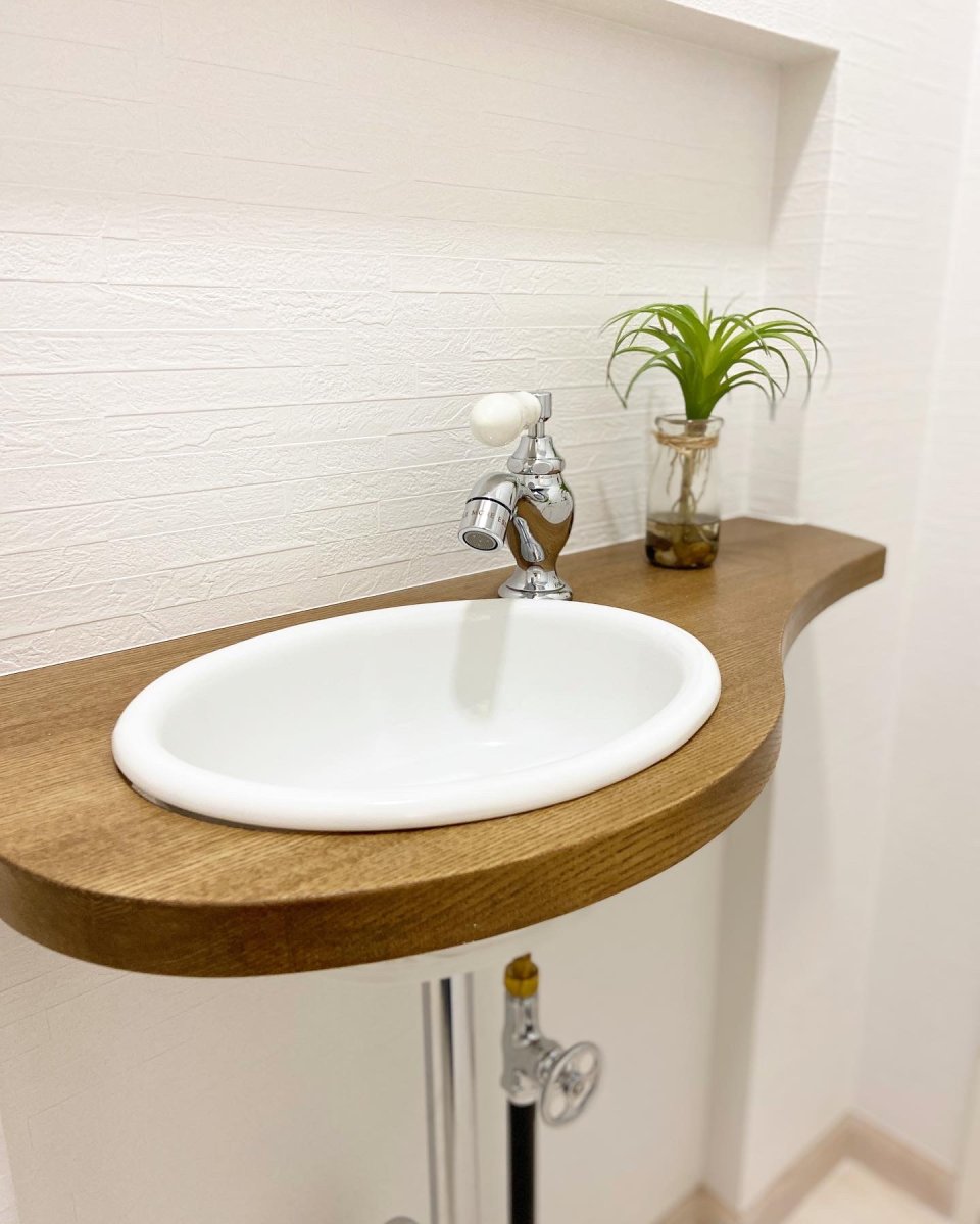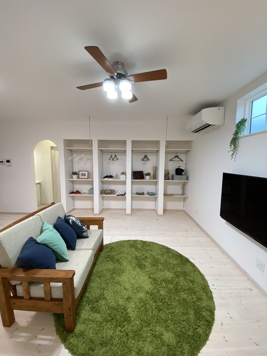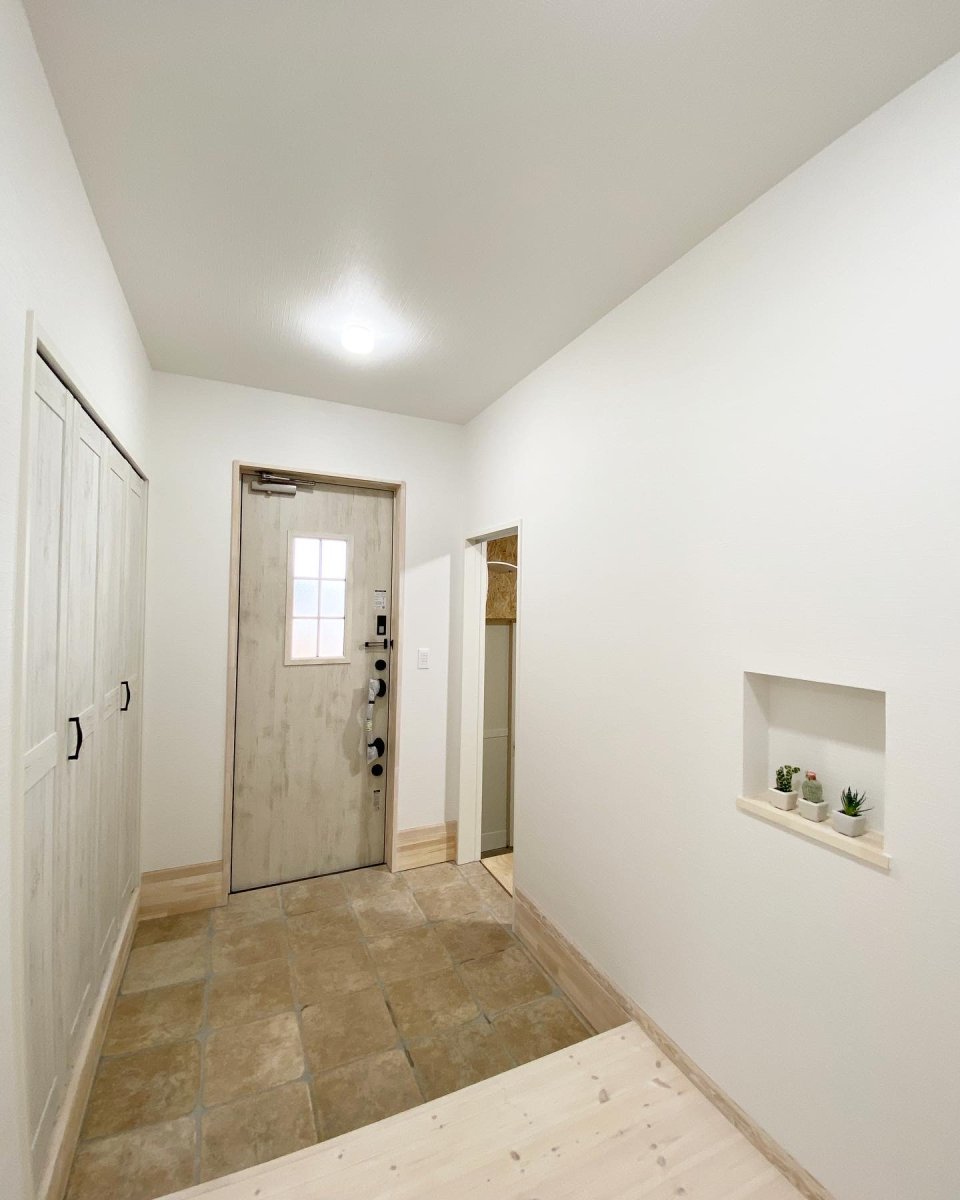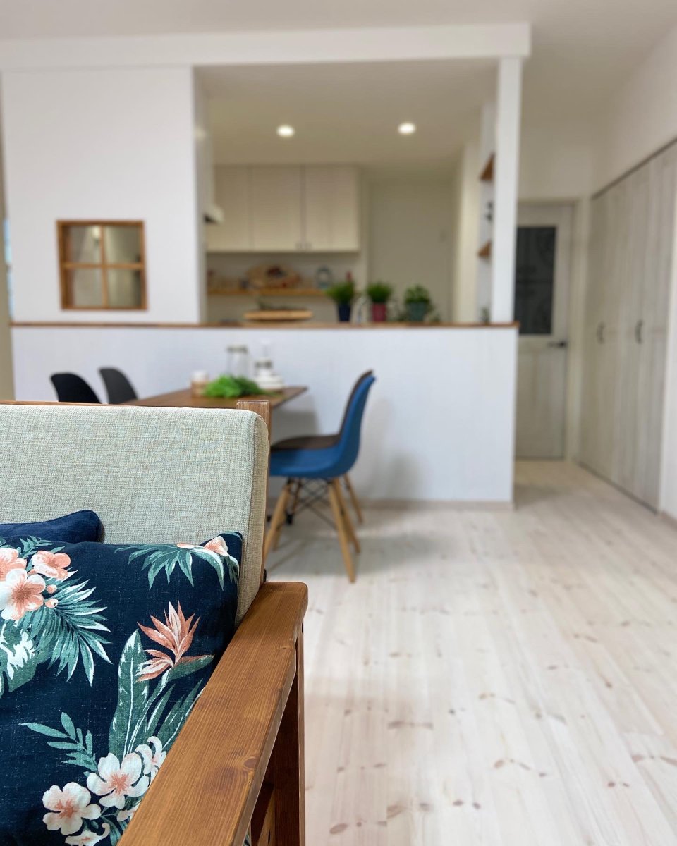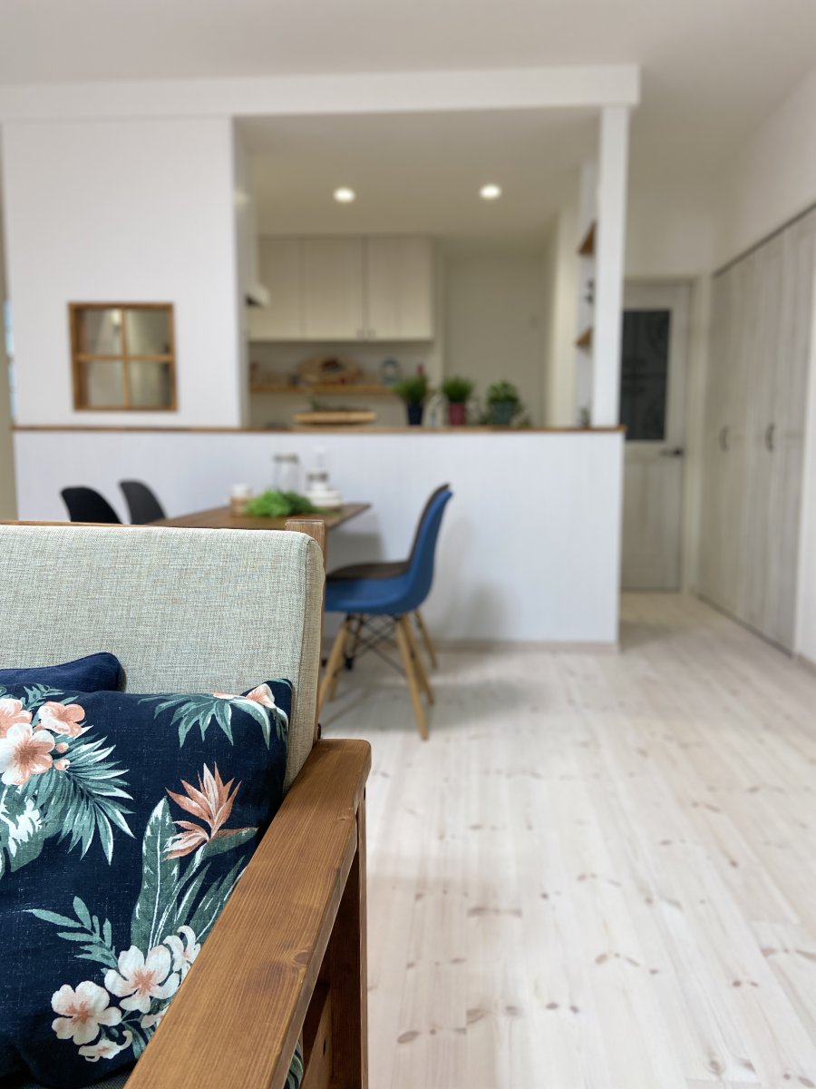 内装は白を基調としつつ、うっすら木目が見えるようなシャビーシックに仕上げました。