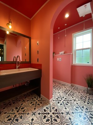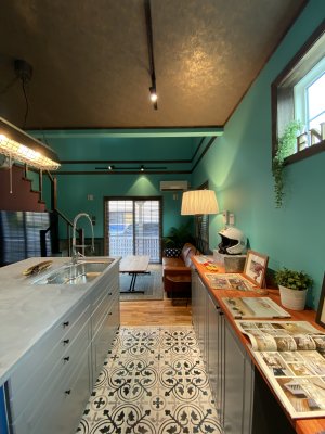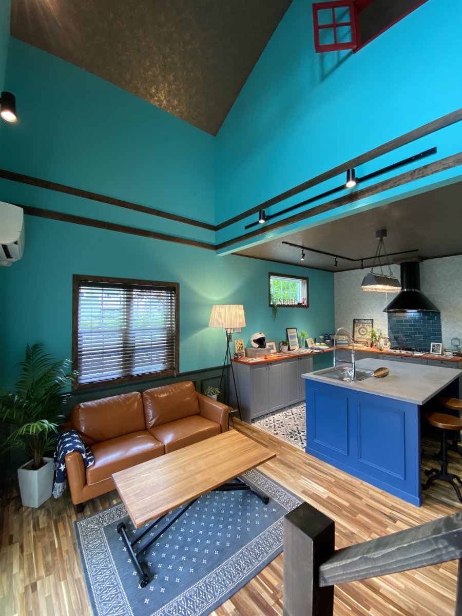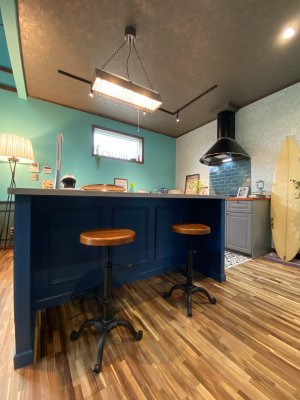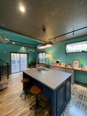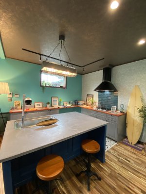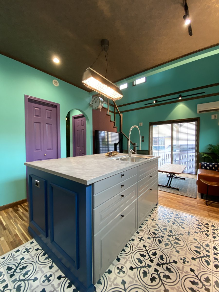 アイランドの天板はモールテックスを採用。見た目よし、質感良しな塗料です。