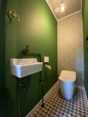 キッチンは特に奥様がこだわった部分で、IKEAの面材、キャビを組み合わせ造作でオリジナルキッチンを仕上げました。L字のカウンター+アイランドシンクという使いやすい組み合わせ。