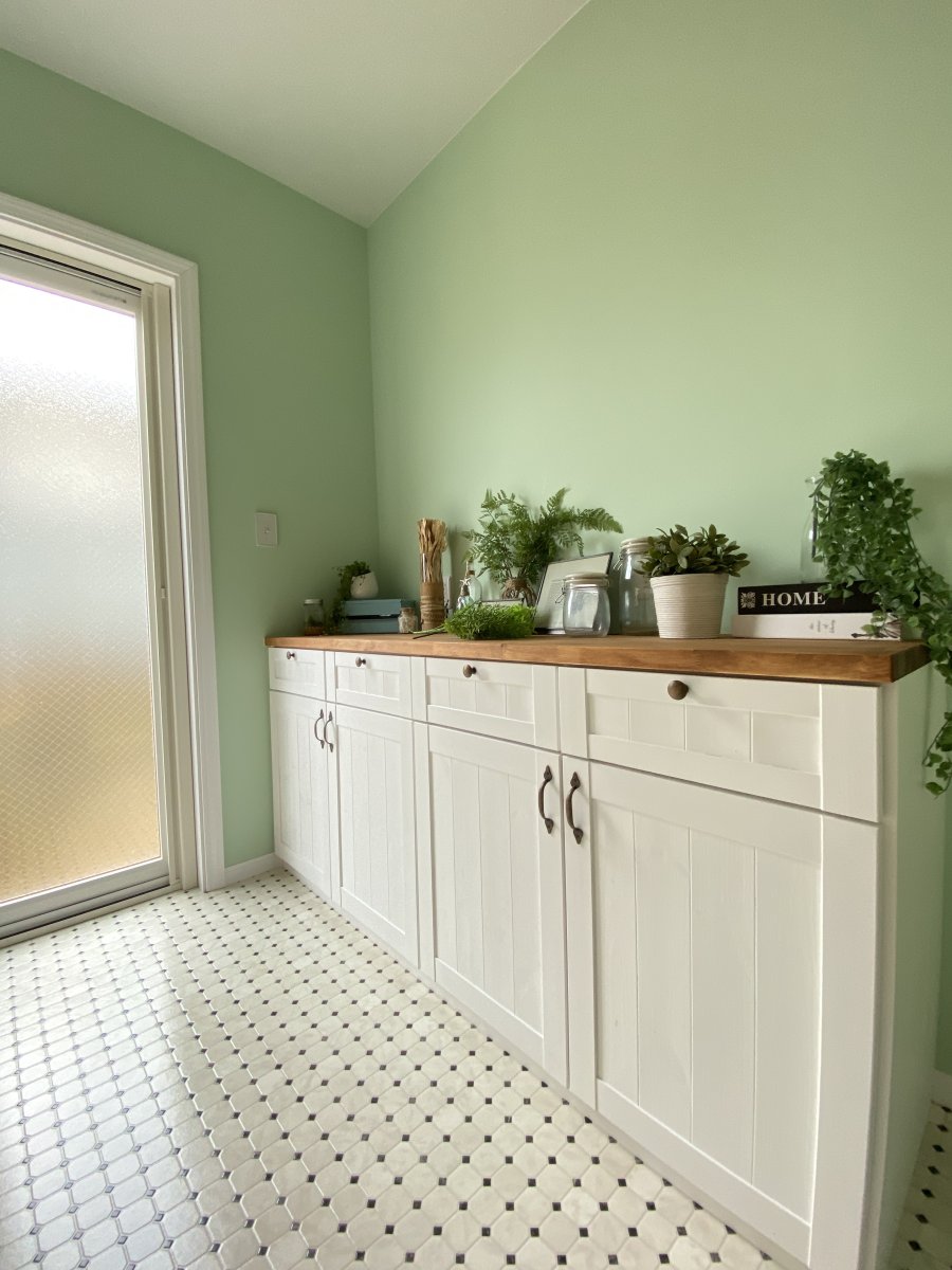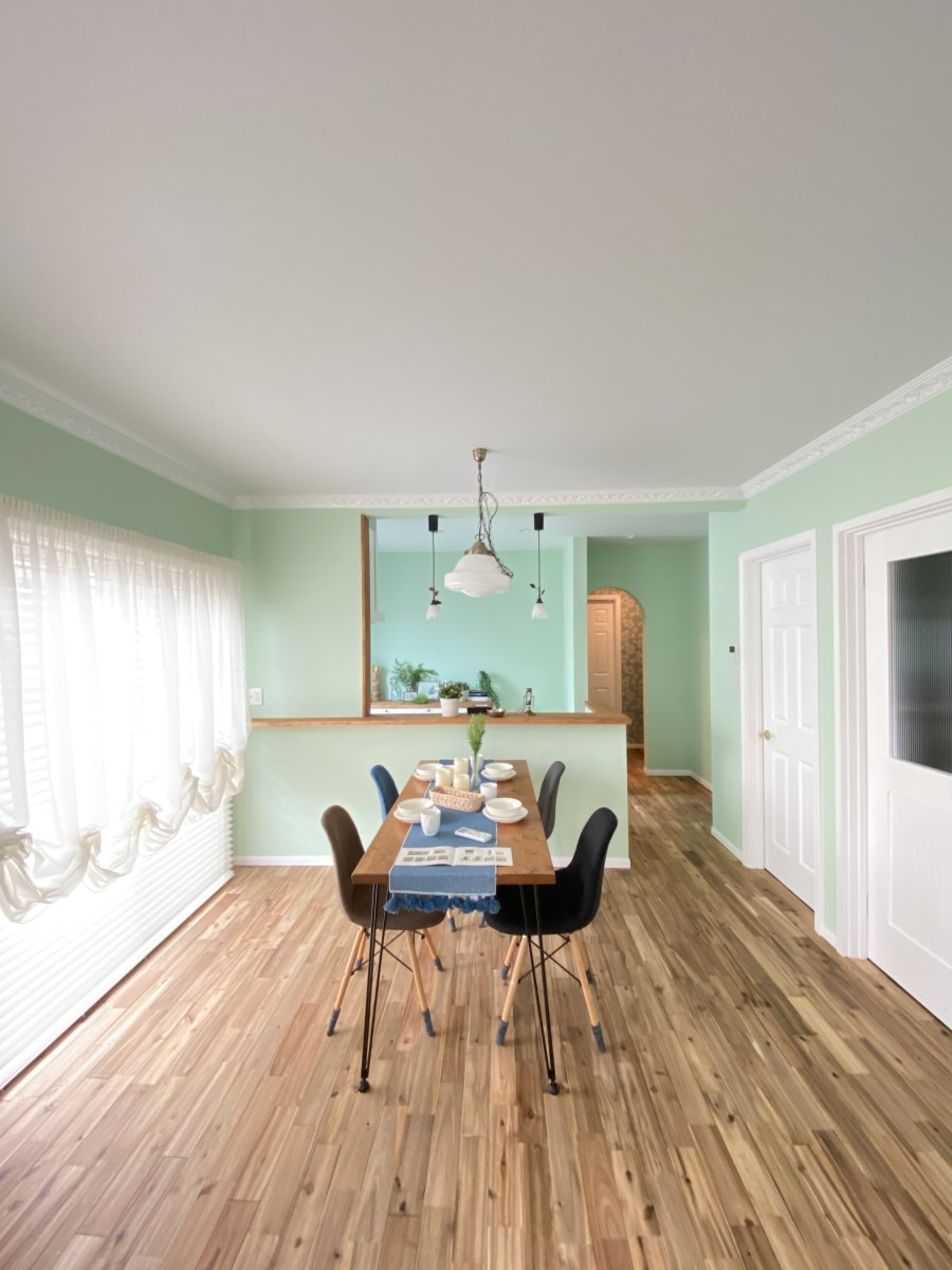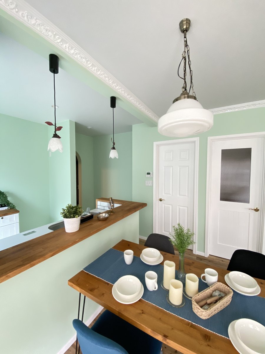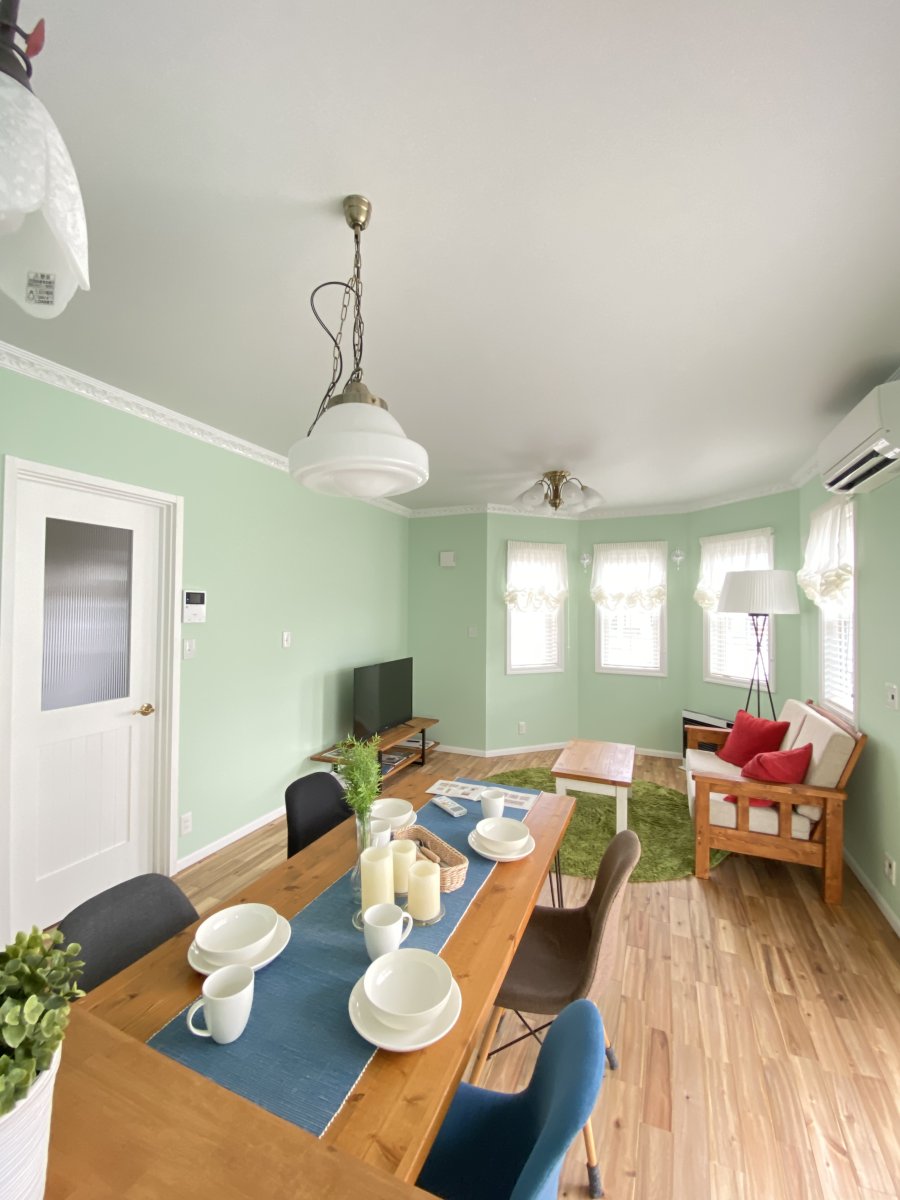 LDKはエレガンスな回り縁やカーテン、また淡いグリーンが落ち着いた空間を演出します。