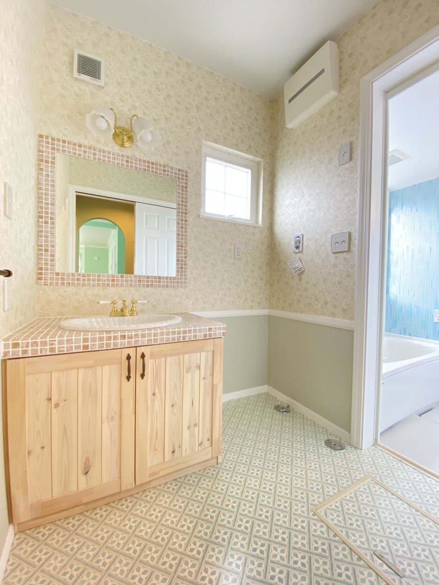 モデルハウスと同じタイル、洗面ボウルで仕上げました。