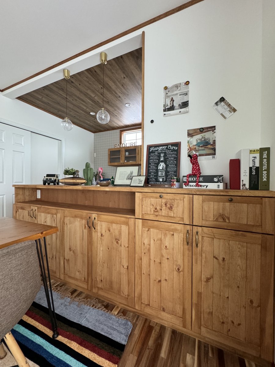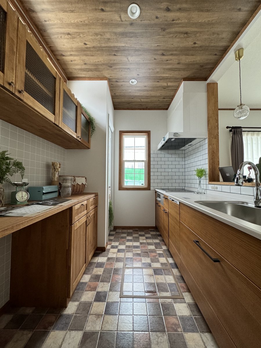 インテリアデザインは奥様の好みを色濃く反映し、飽きの来ないカフェのような落ち着く内装に仕上がりました。