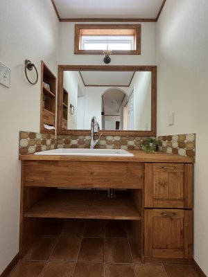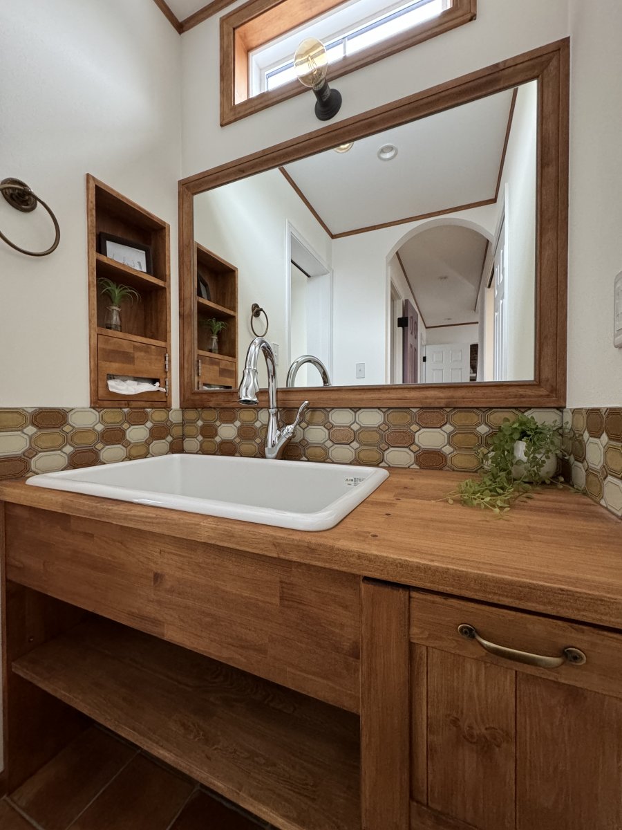 オリジナル造作洗面台は施主様のこだわりの一つ。