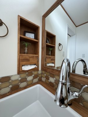 モデルハウスと同じタイル、洗面ボウルで仕上げました。