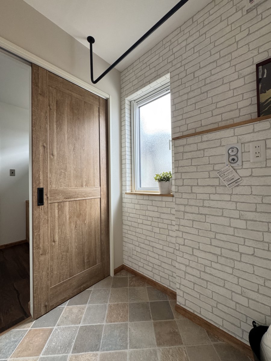 洗面スペースの横には脱衣・ランドリースペースとお風呂という動線。