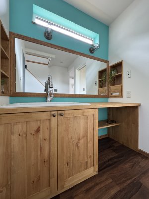 洗面台を部屋としてではなくホール部分に置くことでトイレ使用後も使いやすく、広々しているのでメイクもゆっくりできます。